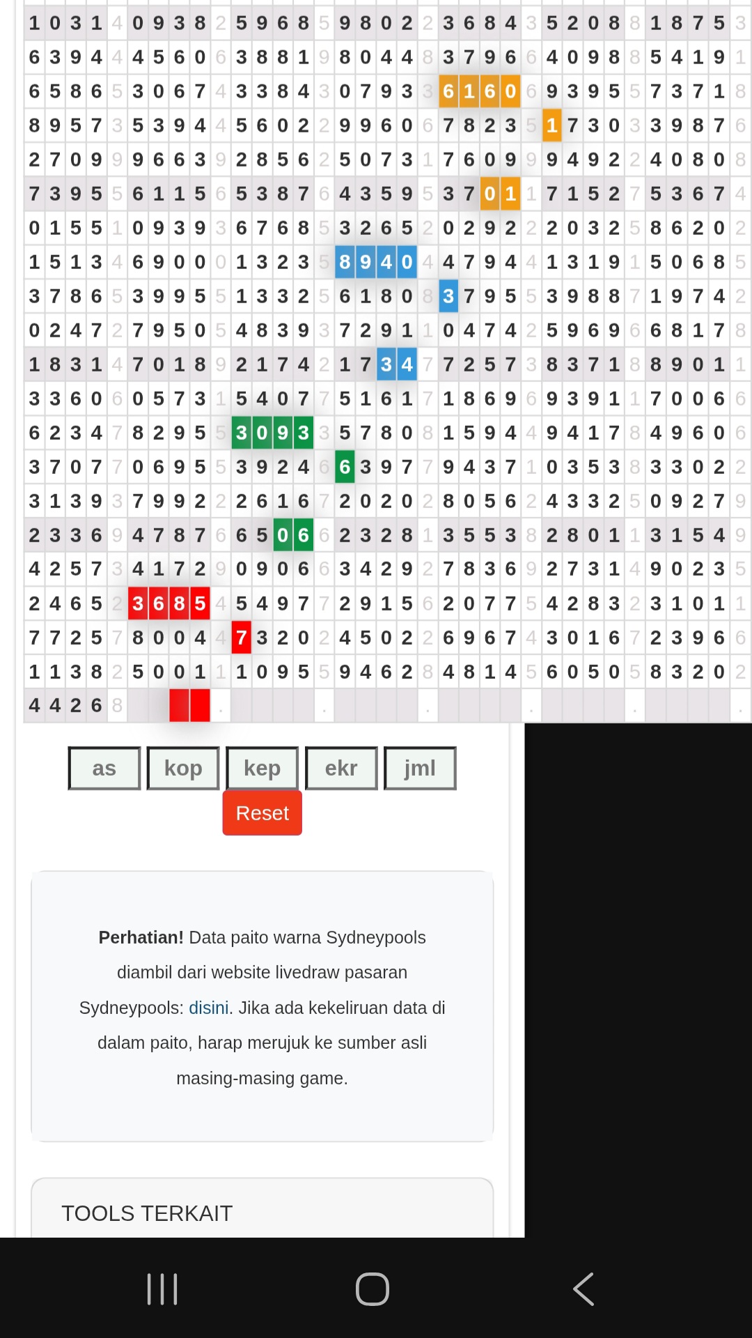 | Rumus Angka Mati berdasarkan kepala harian | 04 05 06 07 08 09 10 15 16 17 18 21 26 28 29 30 31 32 41 42 43 52 53 54 64 65 72 73 75 76 83 84 86 93 94 95 96 97 98 |