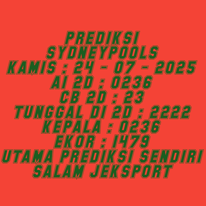 Prediksi Sydneypools Kamis, 18-12-2025 Merupakan Prediksi Otomatis yang menggabungkan Metode Kalender Togel Dengan LN Generator yang akurasi prediksinya sudah kita ketahui bersama. Jadi harap Maklum Jika kadang meleset Prediksi Sydneypools kita. Jadikan ini sebagai perbandingan saja dan tetap Utamakan karya sendiri