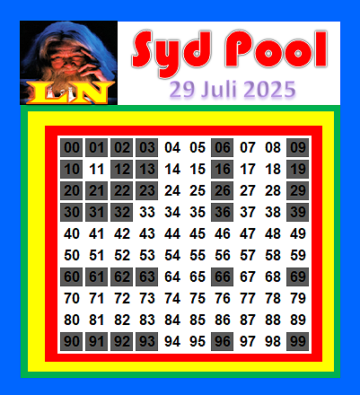 Prediksi Sydneypools Senin, 19-01-2026 Merupakan Prediksi Otomatis yang menggabungkan Metode Kalender Togel Dengan LN Generator yang akurasi prediksinya sudah kita ketahui bersama. Jadi harap Maklum Jika kadang meleset Prediksi Sydneypools kita. Jadikan ini sebagai perbandingan saja dan tetap Utamakan karya sendiri