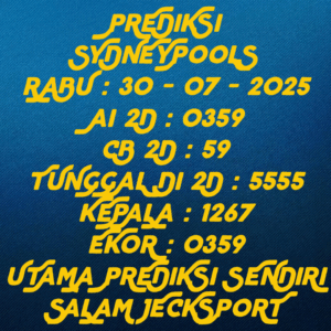 Prediksi Sydneypools Minggu, 18-01-2026 Merupakan Prediksi Otomatis yang menggabungkan Metode Kalender Togel Dengan LN Generator yang akurasi prediksinya sudah kita ketahui bersama. Jadi harap Maklum Jika kadang meleset Prediksi Sydneypools kita. Jadikan ini sebagai perbandingan saja dan tetap Utamakan karya sendiri