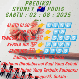 Prediksi Sydneypools Minggu, 28-12-2025 Merupakan Prediksi Otomatis yang menggabungkan Metode Kalender Togel Dengan LN Generator yang akurasi prediksinya sudah kita ketahui bersama. Jadi harap Maklum Jika kadang meleset Prediksi Sydneypools kita. Jadikan ini sebagai perbandingan saja dan tetap Utamakan karya sendiri