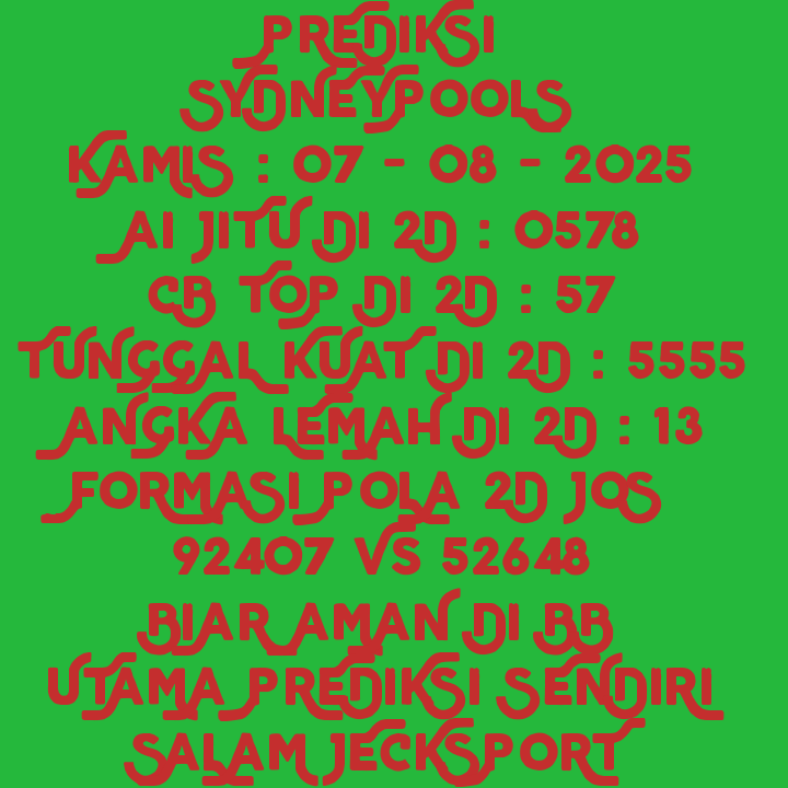 Selamat Bergabung kembali bersama angkanet dalam room Prediksi Sydneypools. Untuk kenyamanan dalam berprediksi, kami melarang adanya posting nomor WA, Web atau FB. Angkanet juga tidak pernah menjual prediksi, software, atau aplikasi togel lainnya. Berprediksilah secara damai dan elegan. Terima kasih telah menjadi pengunjung setia angkanet
