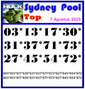 Prediksi Sydneypools Selasa, 13-01-2026 Merupakan Prediksi Otomatis yang menggabungkan Metode Kalender Togel Dengan LN Generator yang akurasi prediksinya sudah kita ketahui bersama. Jadi harap Maklum Jika kadang meleset Prediksi Sydneypools kita. Jadikan ini sebagai perbandingan saja dan tetap Utamakan karya sendiri