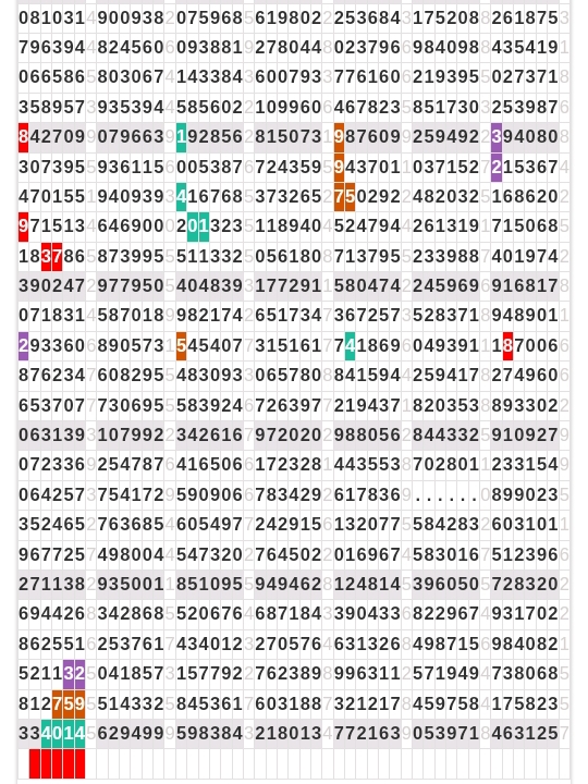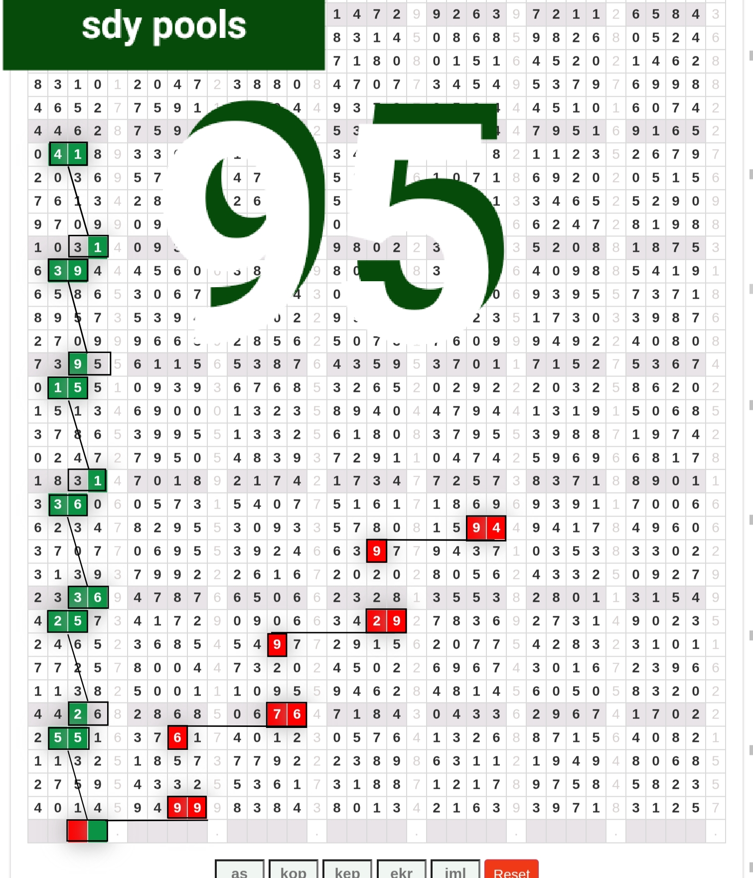| Rumus Angka Mati berdasarkan kepala harian | 04 05 06 07 08 09 10 15 16 17 18 21 26 28 29 30 31 32 41 42 43 52 53 54 64 65 72 73 75 76 83 84 86 93 94 95 96 97 98 |