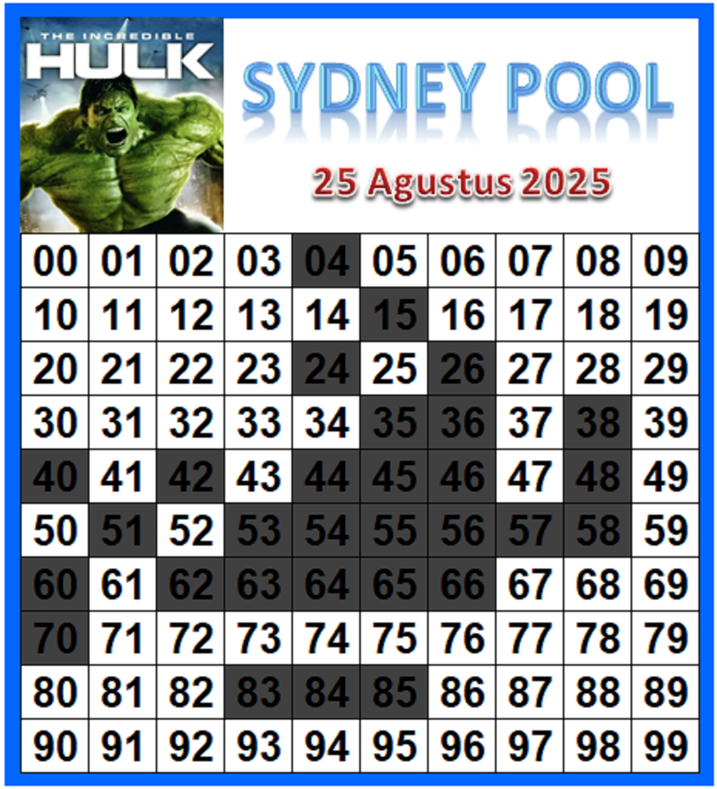 Prediksi Sydneypools Kamis, 18-12-2025 Merupakan Prediksi Otomatis yang menggabungkan Metode Kalender Togel Dengan LN Generator yang akurasi prediksinya sudah kita ketahui bersama. Jadi harap Maklum Jika kadang meleset Prediksi Sydneypools kita. Jadikan ini sebagai perbandingan saja dan tetap Utamakan karya sendiri