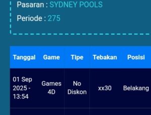 Prediksi Sydneypools Jumat, 16-01-2026 Merupakan Prediksi Otomatis yang menggabungkan Metode Kalender Togel Dengan LN Generator yang akurasi prediksinya sudah kita ketahui bersama. Jadi harap Maklum Jika kadang meleset Prediksi Sydneypools kita. Jadikan ini sebagai perbandingan saja dan tetap Utamakan karya sendiri