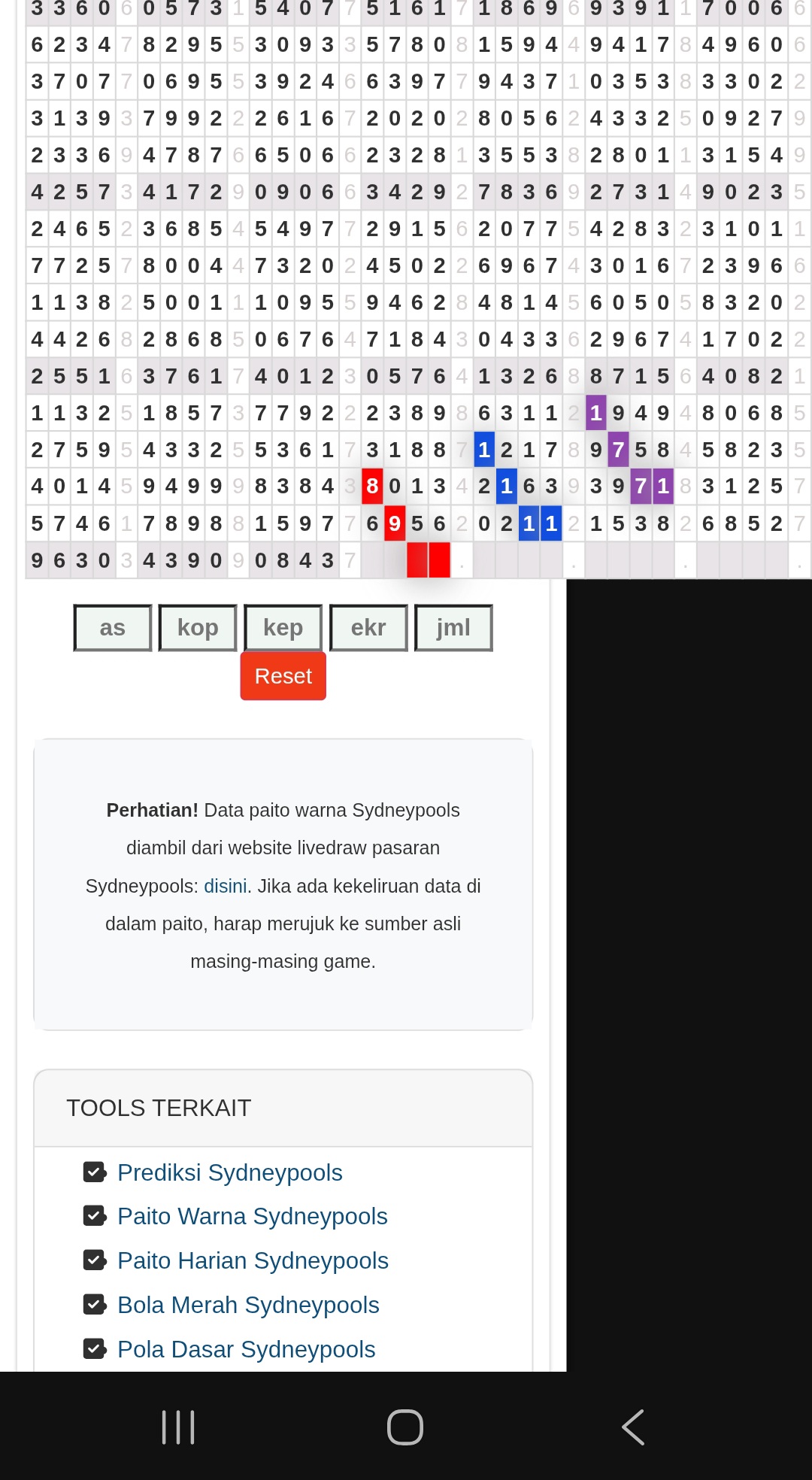 Prediksi Sydneypools Selasa, 20-01-2026 Merupakan Prediksi Otomatis yang menggabungkan Metode Kalender Togel Dengan LN Generator yang akurasi prediksinya sudah kita ketahui bersama. Jadi harap Maklum Jika kadang meleset Prediksi Sydneypools kita. Jadikan ini sebagai perbandingan saja dan tetap Utamakan karya sendiri
