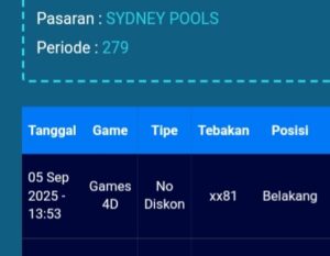 Prediksi Sydneypools Kamis, 22-01-2026 Merupakan Prediksi Otomatis yang menggabungkan Metode Kalender Togel Dengan LN Generator yang akurasi prediksinya sudah kita ketahui bersama. Jadi harap Maklum Jika kadang meleset Prediksi Sydneypools kita. Jadikan ini sebagai perbandingan saja dan tetap Utamakan karya sendiri