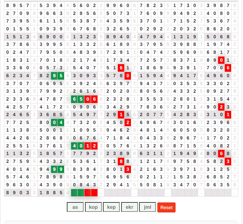 | Rumus Angka Mati berdasarkan kepala harian | 07 08 09 10 18 19 20 21 29 31 32 40 42 43 49 50 51 53 60 61 62 63 64 65 71 72 73 74 75 76 82 83 84 85 87 93 95 96 98 |