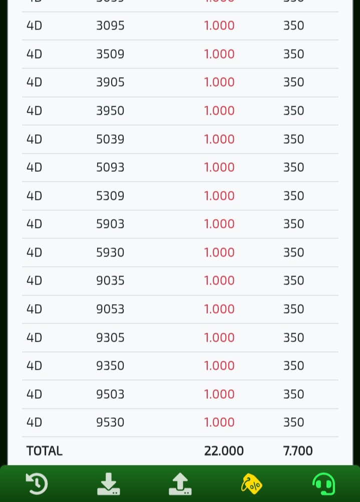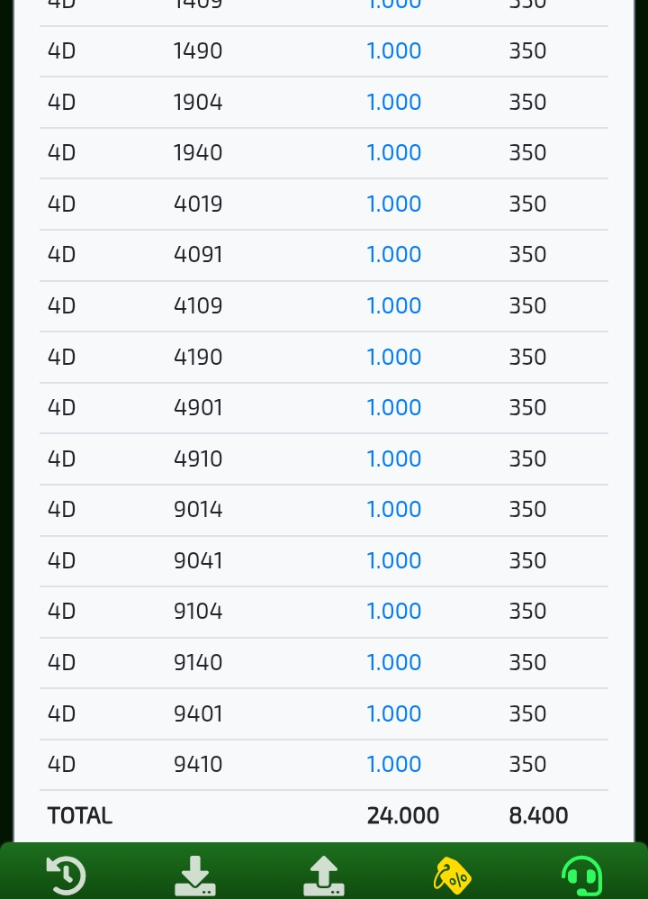 | Rumus Kontrol 4 berdasarkan kepala harian | 1236780 1456790 |