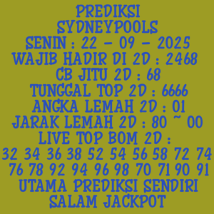 Prediksi Sydneypools Jumat, 16-01-2026 Merupakan Prediksi Otomatis yang menggabungkan Metode Kalender Togel Dengan LN Generator yang akurasi prediksinya sudah kita ketahui bersama. Jadi harap Maklum Jika kadang meleset Prediksi Sydneypools kita. Jadikan ini sebagai perbandingan saja dan tetap Utamakan karya sendiri