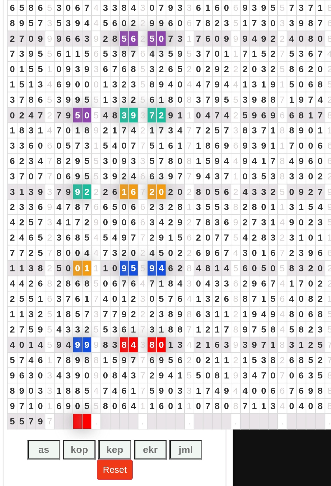 | Rumus Angka Mati berdasarkan kepala harian | 04 05 06 07 08 09 10 15 16 17 18 21 26 28 29 30 31 32 41 42 43 52 53 54 64 65 72 73 75 76 83 84 86 93 94 95 96 97 98 |