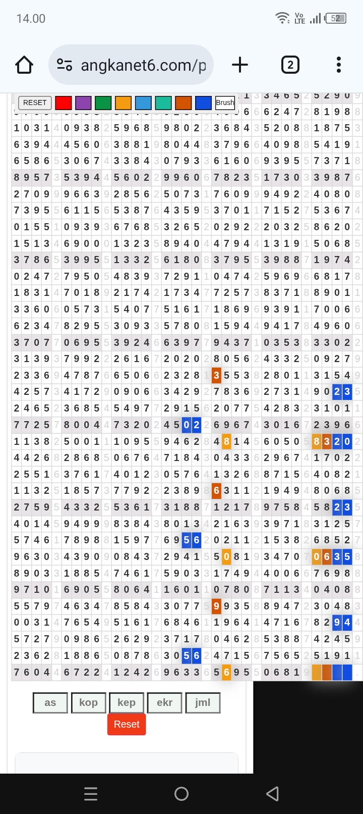 | Rumus Angka Mati berdasarkan kepala harian | 05 06 08 10 15 16 17 18 19 20 21 26 27 28 29 30 32 37 38 39 40 41 43 48 52 53 54 63 64 65 74 75 76 86 87 94 95 97 98 |