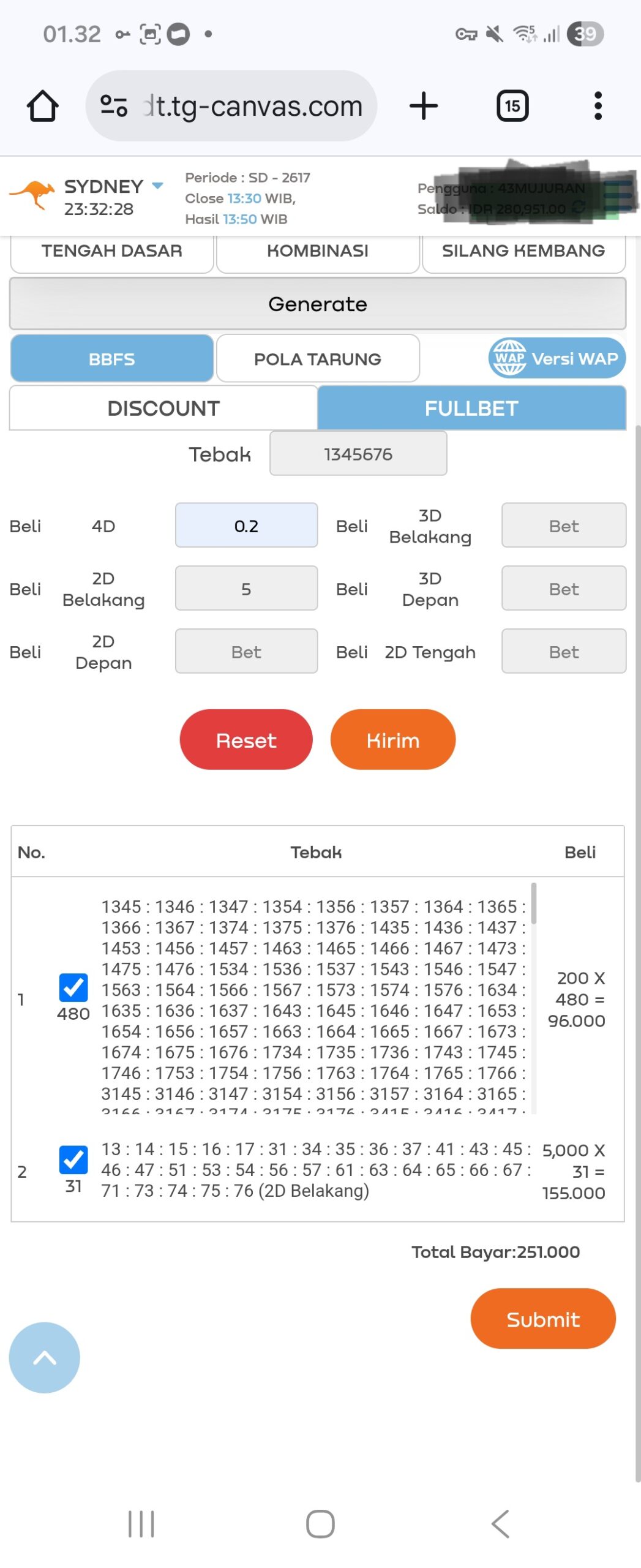 | Angka Ikut berdasarkan Kalender Jawa | 23489 |