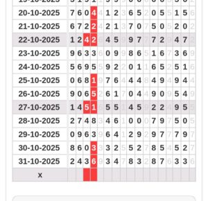 | Rumus Angka Mati berdasarkan kepala harian | 05 06 08 09 16 17 19 20 21 26 27 28 29 30 31 32 37 38 39 40 41 43 48 49 51 52 54 59 63 64 65 74 75 76 85 86 87 97 98 |