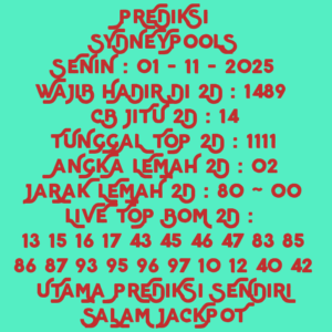 Prediksi Sydneypools Jumat, 19-12-2025 Merupakan Prediksi Otomatis yang menggabungkan Metode Kalender Togel Dengan LN Generator yang akurasi prediksinya sudah kita ketahui bersama. Jadi harap Maklum Jika kadang meleset Prediksi Sydneypools kita. Jadikan ini sebagai perbandingan saja dan tetap Utamakan karya sendiri