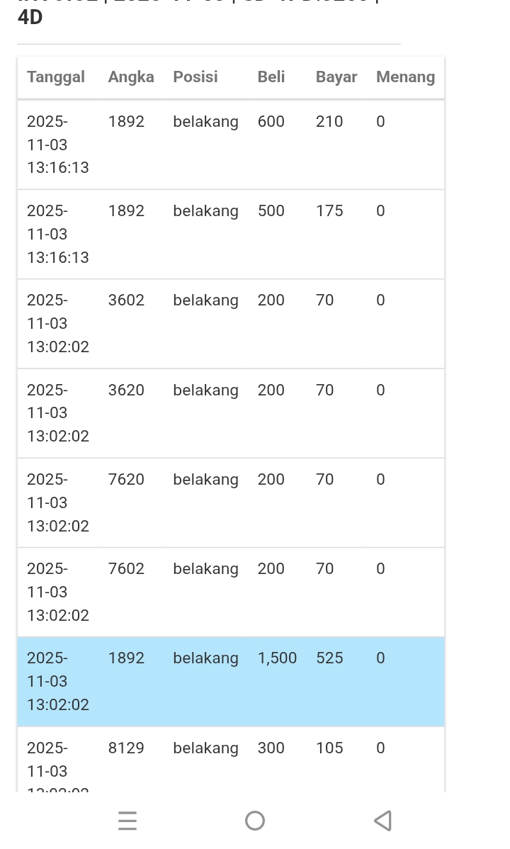 | Angka Ikut berdasarkan Kalender Jawa | 03789 |