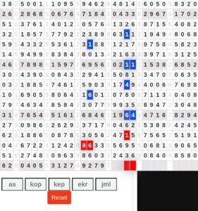 | Rumus Angka Mati berdasarkan kepala harian | 04 05 06 07 08 09 10 15 16 17 18 21 26 28 29 30 31 32 41 42 43 52 53 54 64 65 72 73 75 76 83 84 86 93 94 95 96 97 98 |