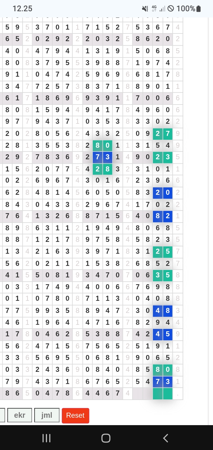 | Rumus Angka Mati berdasarkan kepala harian | 07 08 09 10 19 20 21 27 28 31 38 39 40 41 42 43 48 49 50 51 52 53 54 59 60 61 62 63 65 71 73 74 76 85 86 87 96 97 98 |