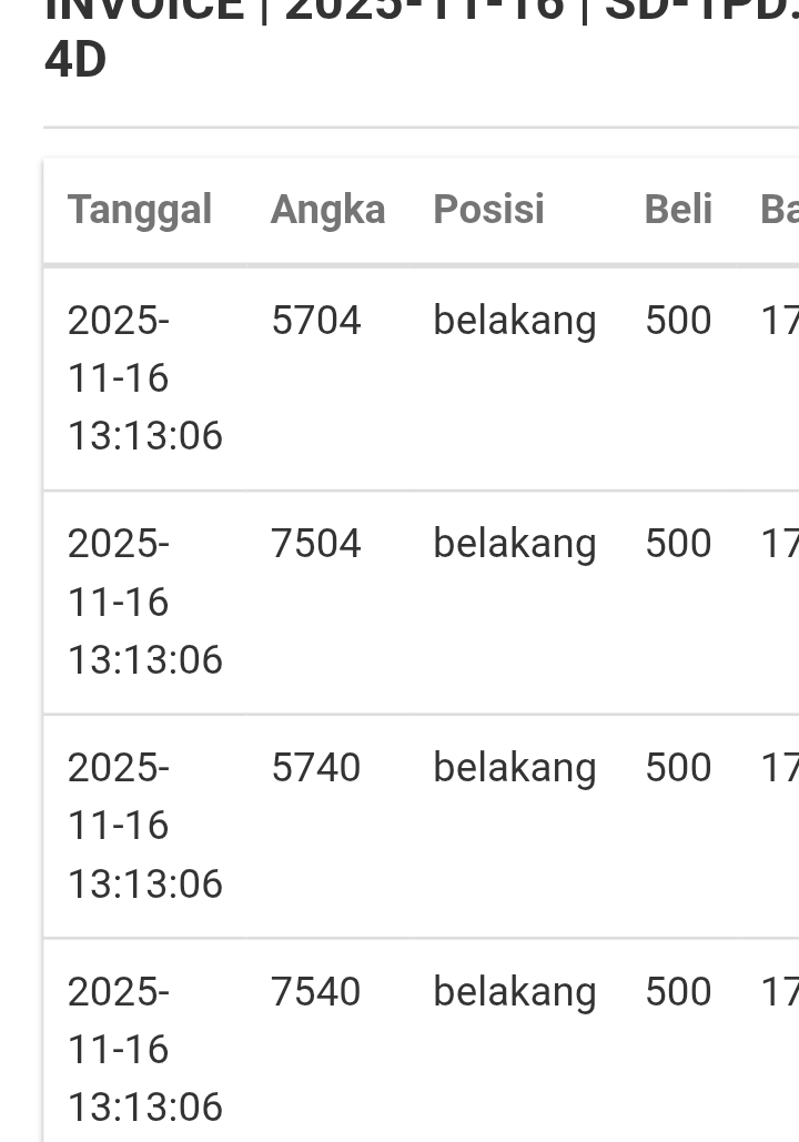 | Rumus Kontrol 4 berdasarkan kepala harian | 2345890 1236789 |