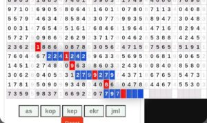 | Rumus Angka Mati berdasarkan kepala harian | 07 08 09 10 19 20 21 27 28 31 38 39 40 41 42 43 48 49 50 51 52 53 54 59 60 61 62 63 65 71 73 74 76 85 86 87 96 97 98 |