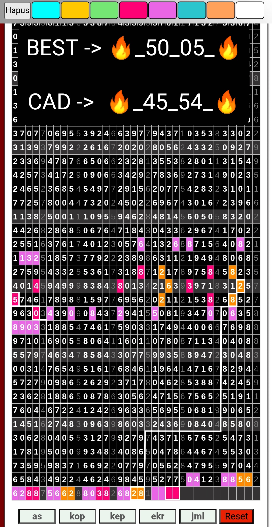 | Rumus Angka Mati berdasarkan kepala harian | 04 05 06 07 08 09 10 15 16 17 18 21 26 28 29 30 31 32 41 42 43 52 53 54 64 65 72 73 75 76 83 84 86 93 94 95 96 97 98 |