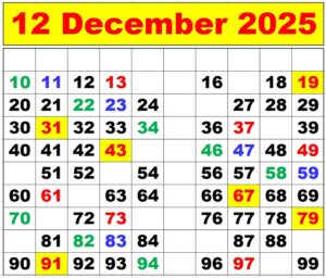 | Rumus Angka Mati berdasarkan kepala harian | 04 05 06 07 08 09 10 15 16 17 18 21 26 28 29 30 31 32 41 42 43 52 53 54 64 65 72 73 75 76 83 84 86 93 94 95 96 97 98 |