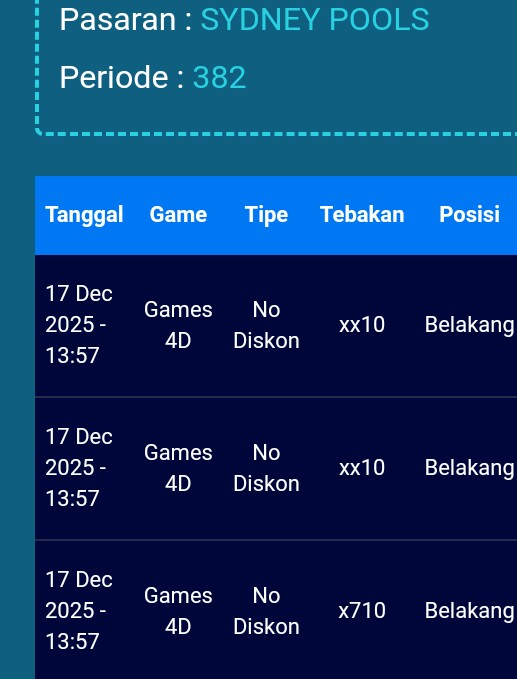 Selamat Bergabung kembali bersama angkanet dalam room Prediksi Sydneypools. Untuk kenyamanan dalam berprediksi, kami melarang adanya posting nomor WA, Web atau FB. Angkanet juga tidak pernah menjual prediksi, software, atau aplikasi togel lainnya. Berprediksilah secara damai dan elegan. Terima kasih telah menjadi pengunjung setia angkanet