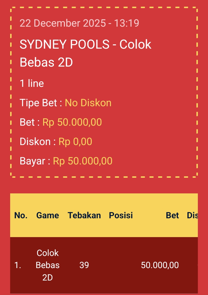 Selamat Bergabung kembali bersama angkanet dalam room Prediksi Sydneypools. Untuk kenyamanan dalam berprediksi, kami melarang adanya posting nomor WA, Web atau FB. Angkanet juga tidak pernah menjual prediksi, software, atau aplikasi togel lainnya. Berprediksilah secara damai dan elegan. Terima kasih telah menjadi pengunjung setia angkanet