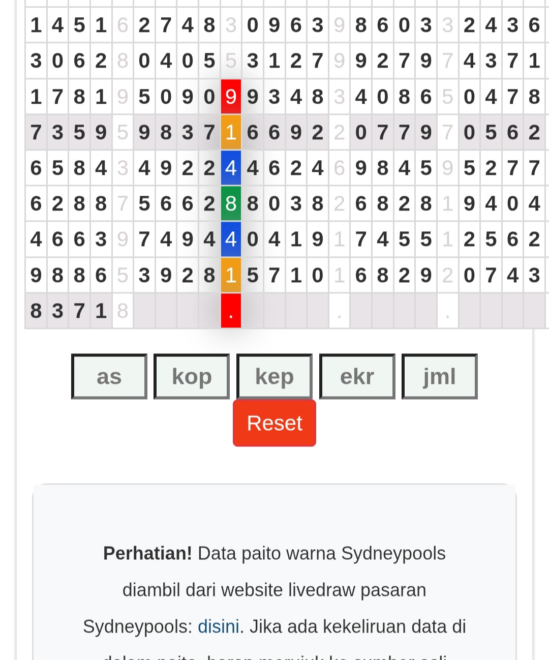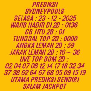 Prediksi Sydneypools Kamis, 18-12-2025 Merupakan Prediksi Otomatis yang menggabungkan Metode Kalender Togel Dengan LN Generator yang akurasi prediksinya sudah kita ketahui bersama. Jadi harap Maklum Jika kadang meleset Prediksi Sydneypools kita. Jadikan ini sebagai perbandingan saja dan tetap Utamakan karya sendiri