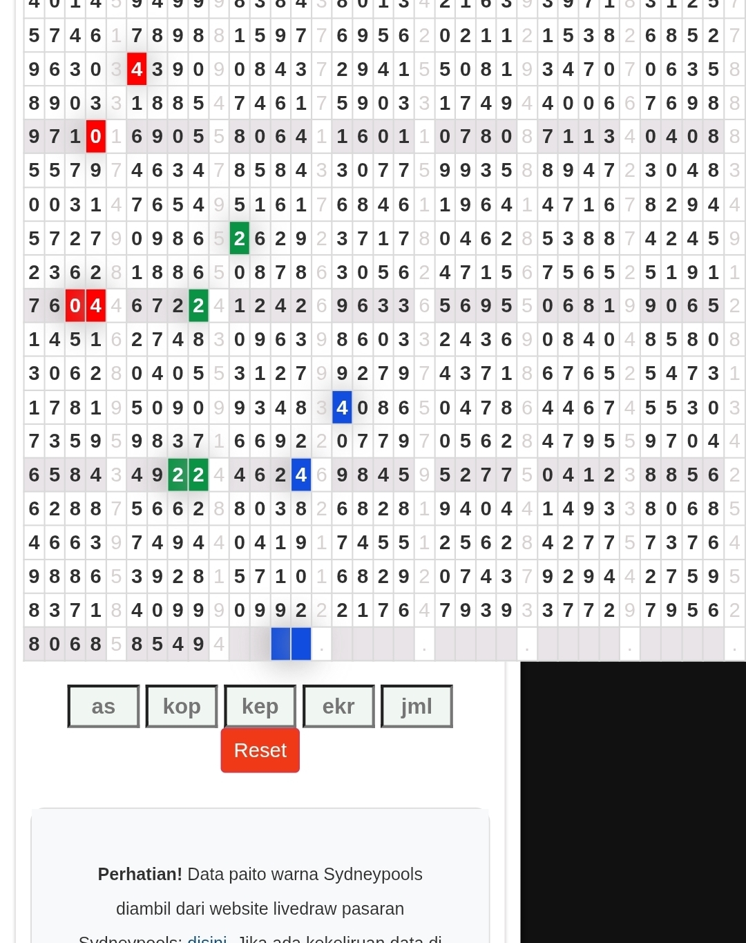 Prediksi Sydneypools Minggu, 11-01-2026 Merupakan Prediksi Otomatis yang menggabungkan Metode Kalender Togel Dengan LN Generator yang akurasi prediksinya sudah kita ketahui bersama. Jadi harap Maklum Jika kadang meleset Prediksi Sydneypools kita. Jadikan ini sebagai perbandingan saja dan tetap Utamakan karya sendiri