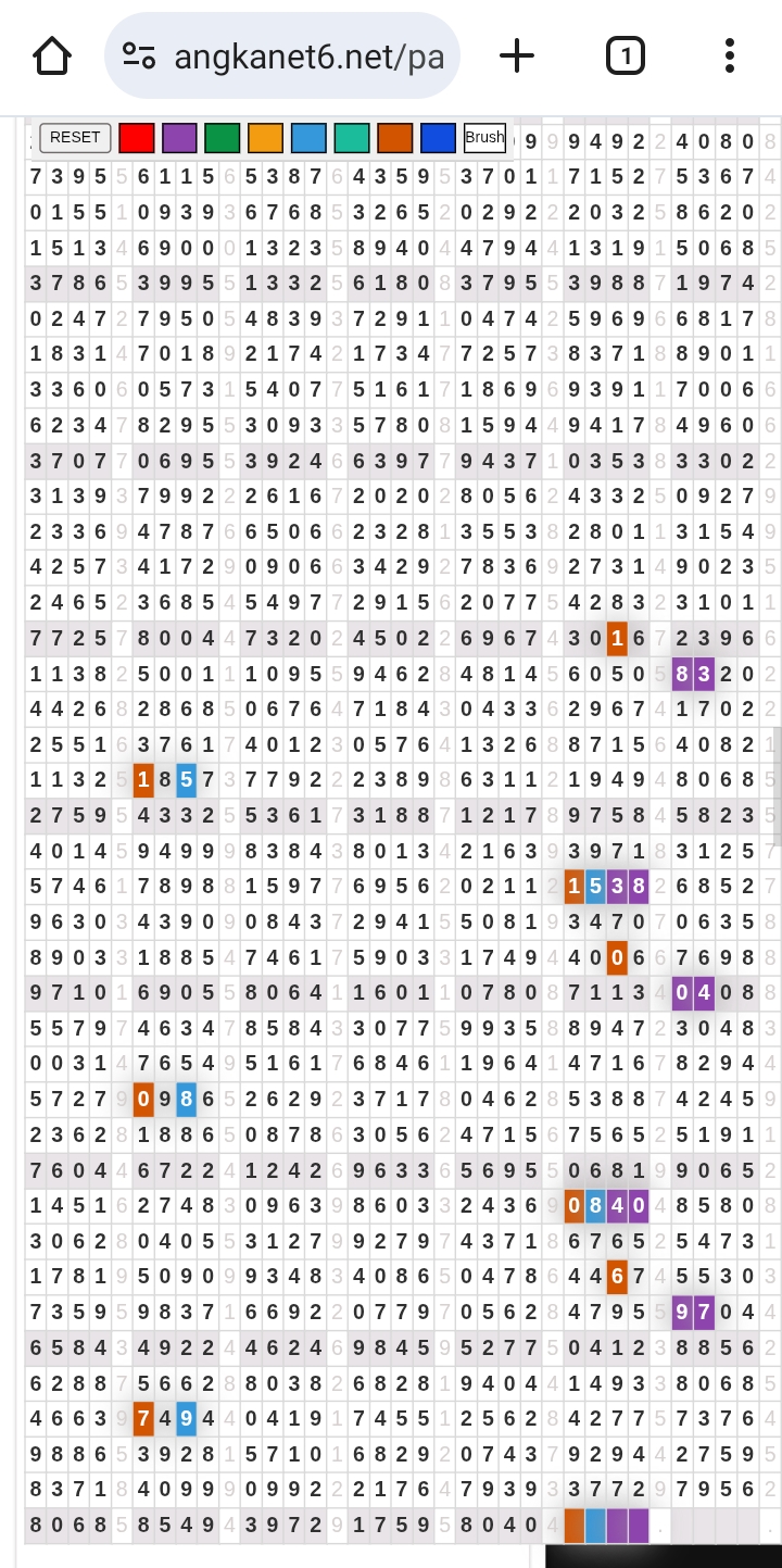 | Rumus Angka Mati berdasarkan kepala harian | 04 05 06 07 08 09 10 15 16 17 18 21 26 28 29 30 31 32 41 42 43 52 53 54 64 65 72 73 75 76 83 84 86 93 94 95 96 97 98 |