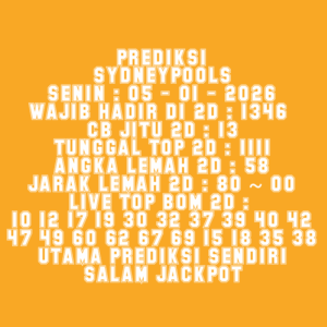 Prediksi Sydneypools Rabu, 14-01-2026 Merupakan Prediksi Otomatis yang menggabungkan Metode Kalender Togel Dengan LN Generator yang akurasi prediksinya sudah kita ketahui bersama. Jadi harap Maklum Jika kadang meleset Prediksi Sydneypools kita. Jadikan ini sebagai perbandingan saja dan tetap Utamakan karya sendiri