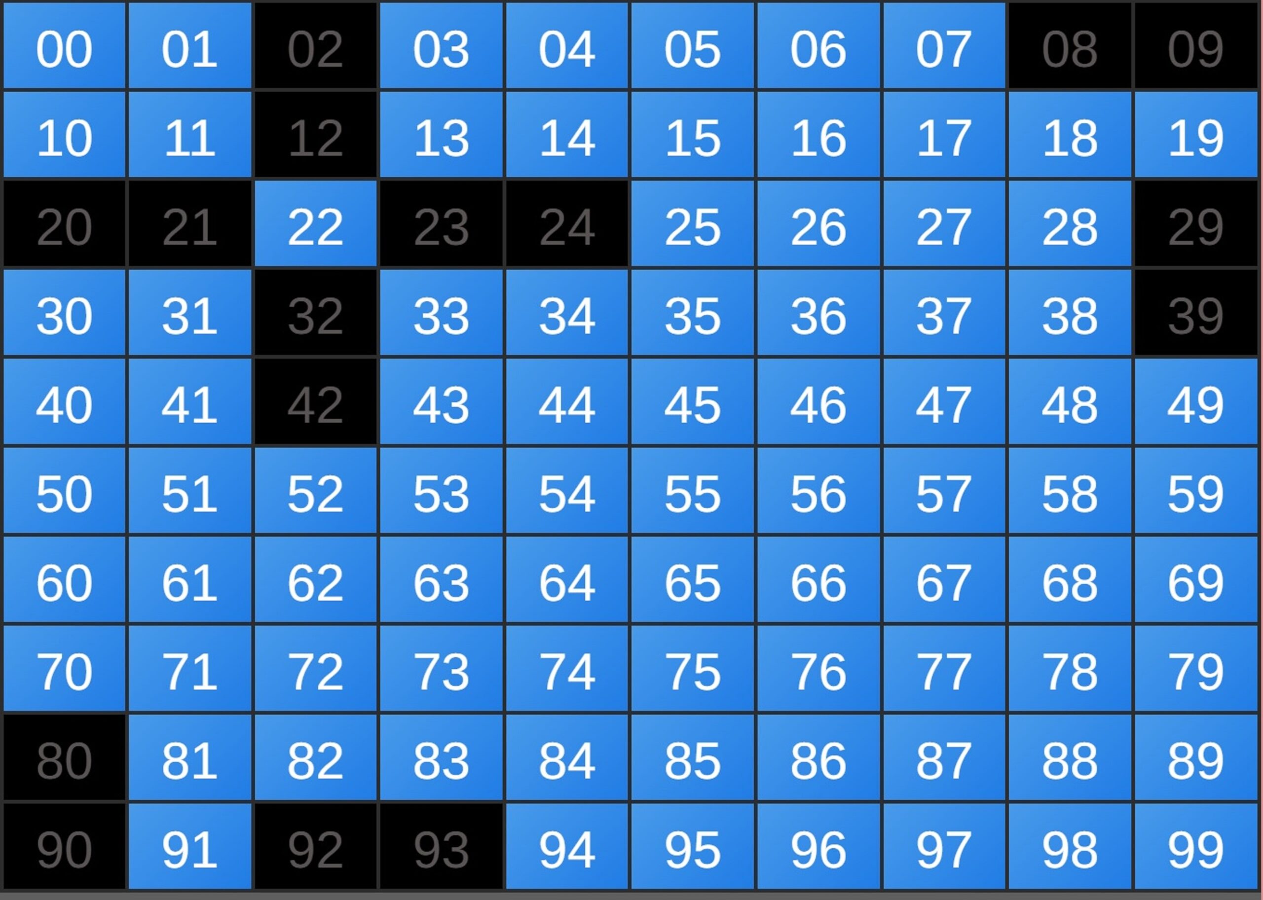| Rumus Angka Mati berdasarkan kepala harian | 05 06 08 09 16 17 19 20 21 26 27 28 29 30 31 32 37 38 39 40 41 43 48 49 51 52 54 59 63 64 65 74 75 76 85 86 87 97 98 |