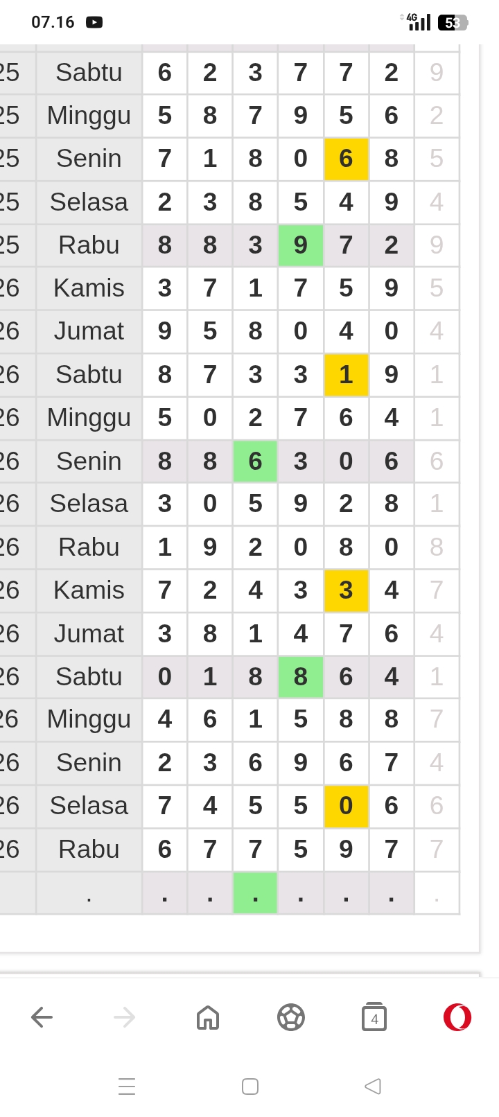 | Rumus Angka Mati berdasarkan kepala harian | 05 06 08 10 15 16 17 18 19 20 21 26 27 28 29 30 32 37 38 39 40 41 43 48 52 53 54 63 64 65 74 75 76 86 87 94 95 97 98 |