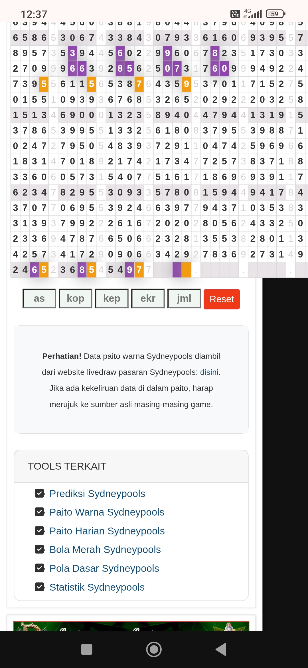 Prediksi Sydneypools Senin, 19-01-2026 Merupakan Prediksi Otomatis yang menggabungkan Metode Kalender Togel Dengan LN Generator yang akurasi prediksinya sudah kita ketahui bersama. Jadi harap Maklum Jika kadang meleset Prediksi Sydneypools kita. Jadikan ini sebagai perbandingan saja dan tetap Utamakan karya sendiri