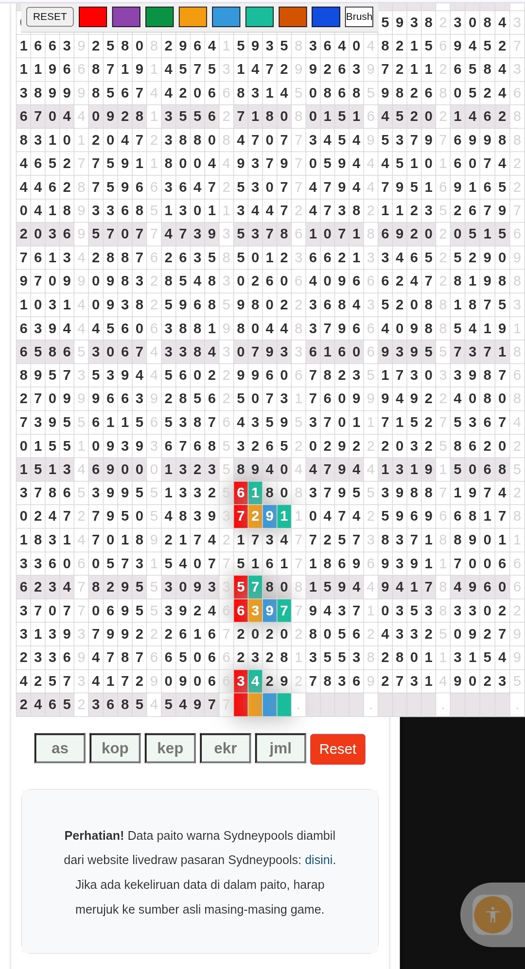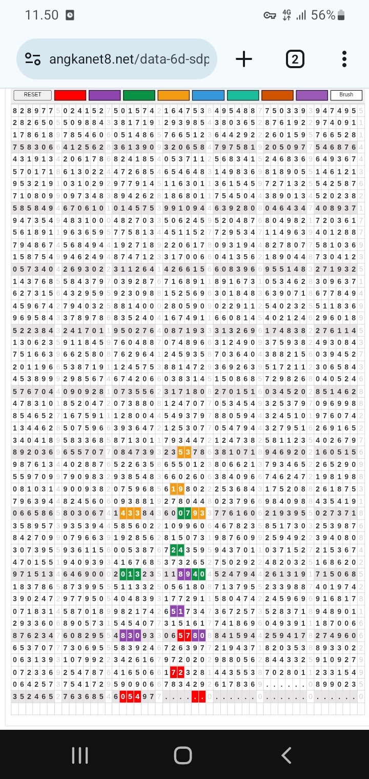 | Rumus Angka Mati berdasarkan kepala harian | 05 06 08 10 15 16 17 18 19 20 21 26 27 28 29 30 32 37 38 39 40 41 43 48 52 53 54 63 64 65 74 75 76 86 87 94 95 97 98 |