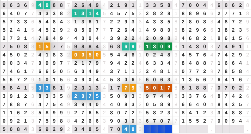 | Rumus Angka Mati berdasarkan kepala harian | 04 05 06 07 08 09 10 15 16 17 18 21 26 28 29 30 31 32 41 42 43 52 53 54 64 65 72 73 75 76 83 84 86 93 94 95 96 97 98 |
