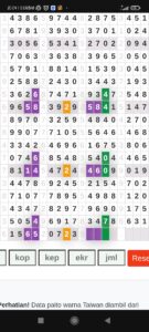 | Rumus Angka Mati berdasarkan kepala harian | 04 05 06 07 08 09 10 15 16 17 18 19 21 26 27 28 29 30 32 37 39 41 42 43 52 53 54 63 64 65 75 76 83 84 86 87 94 95 97 |