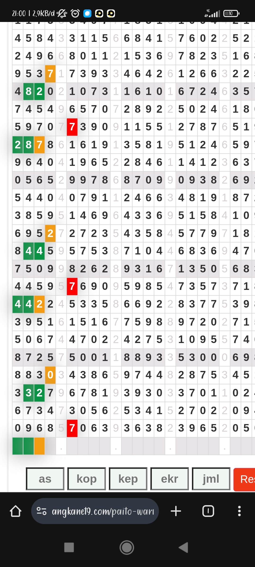 | Rumus Angka Mati berdasarkan kepala harian | 04 05 06 07 08 09 10 15 16 17 18 19 21 26 27 28 29 30 32 37 39 41 42 43 52 53 54 63 64 65 75 76 83 84 86 87 94 95 97 |