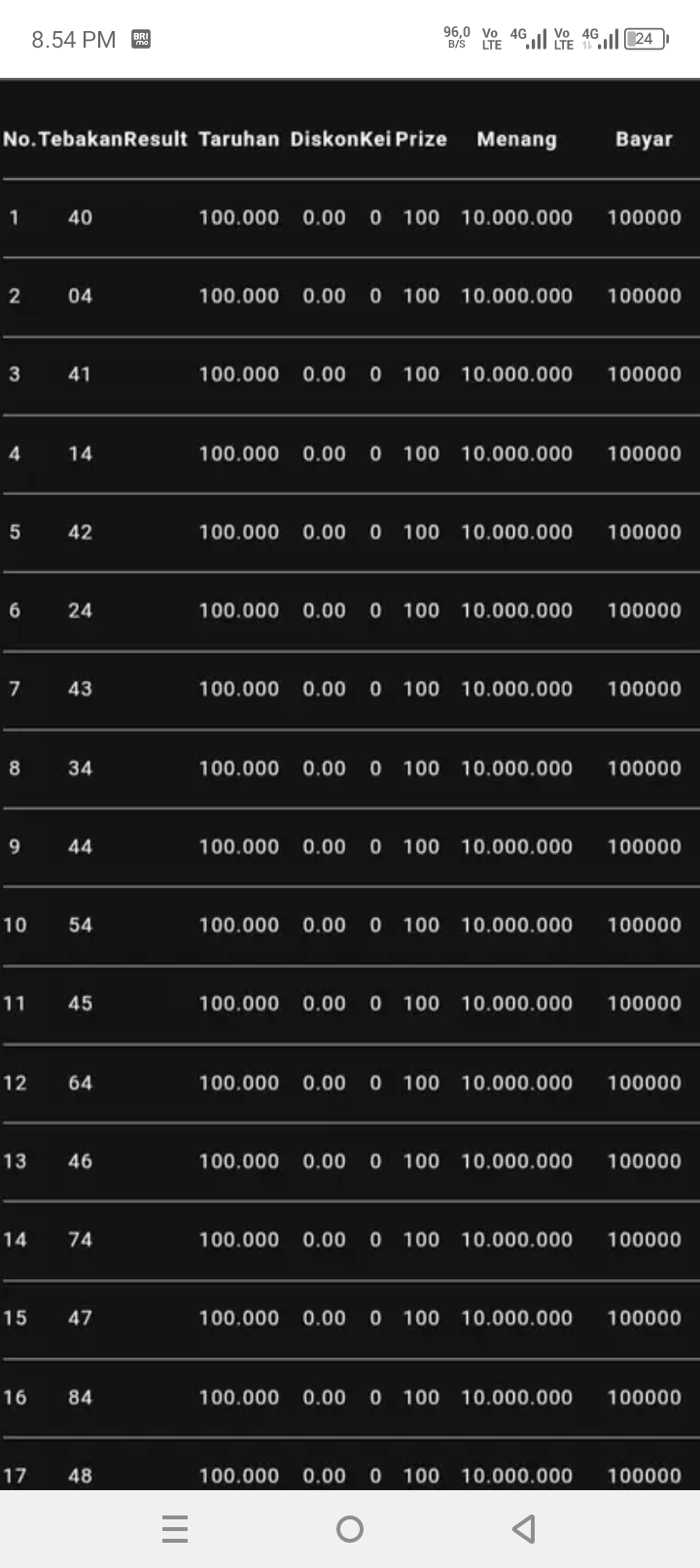 | Rumus Kontrol 4 berdasarkan kepala harian | 1456890 2345789 |