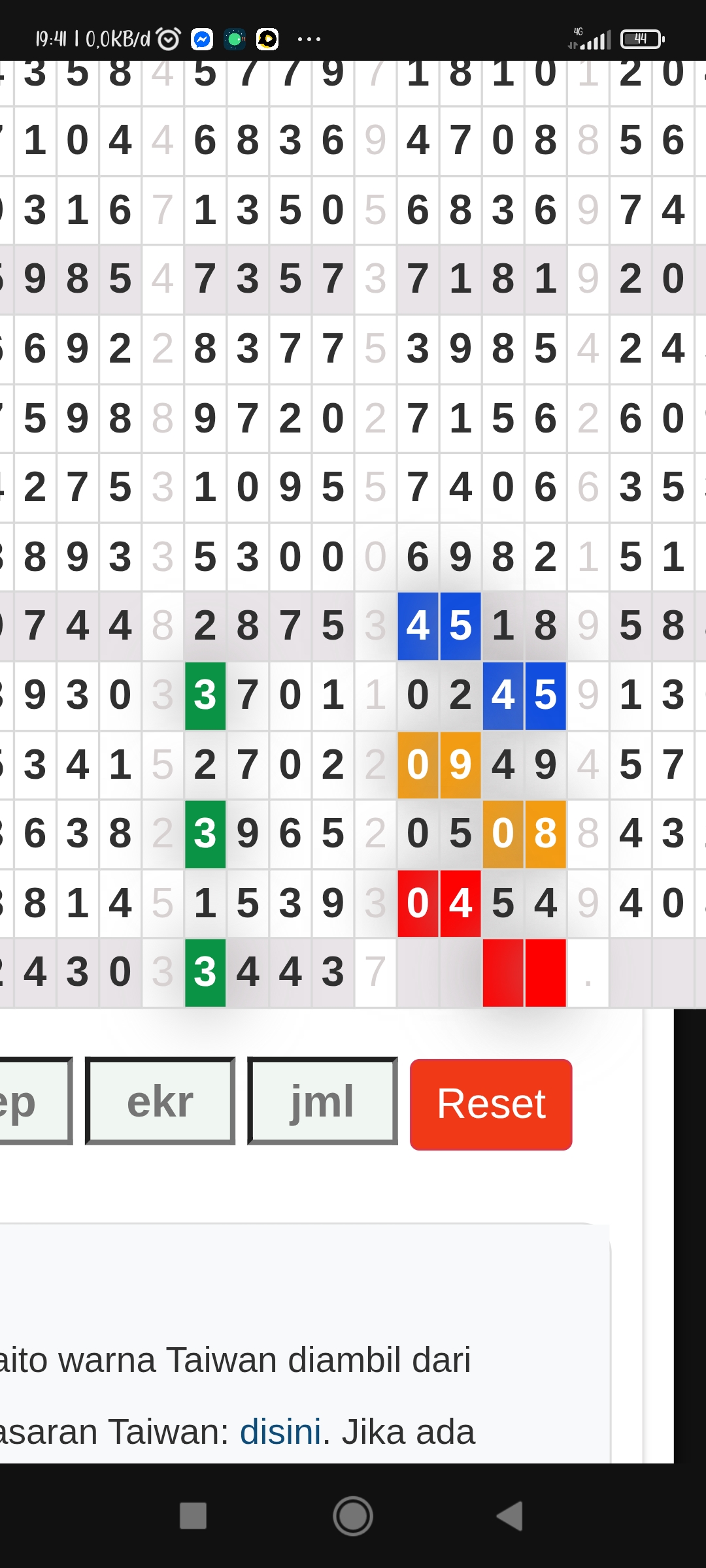 | Rumus Angka Mati berdasarkan kepala harian | 07 08 09 10 18 19 20 21 29 31 32 40 42 43 49 50 51 53 60 61 62 63 64 65 71 72 73 74 75 76 82 83 84 85 87 93 95 96 98 |