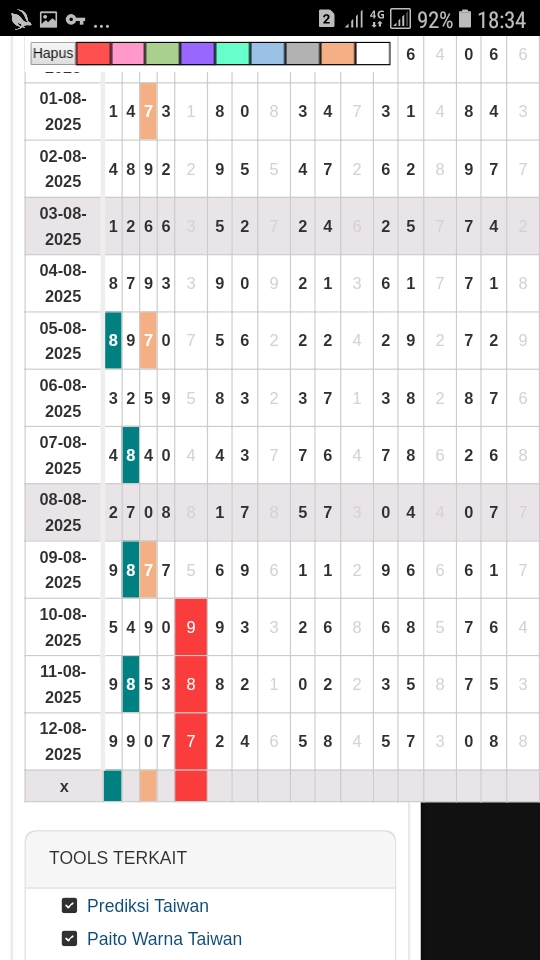 Prediksi Taiwan Jumat, 16-01-2026 Merupakan Prediksi Otomatis yang menggabungkan Metode Kalender Togel Dengan LN Generator yang akurasi prediksinya sudah kita ketahui bersama. Jadi harap Maklum Jika kadang meleset Prediksi Taiwan kita. Jadikan ini sebagai perbandingan saja dan tetap Utamakan karya sendiri