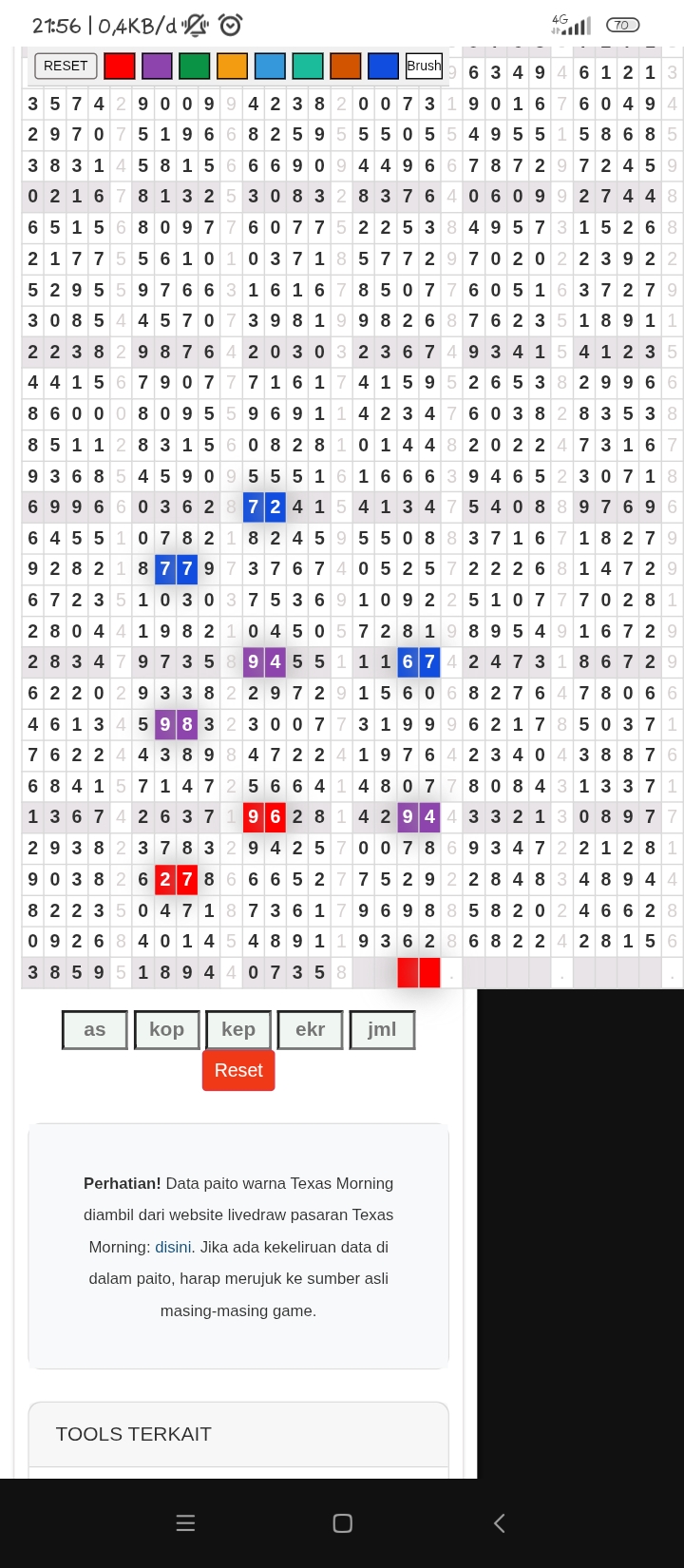 | Rumus Angka Mati berdasarkan kepala harian | 07 08 09 10 19 20 21 27 28 31 38 39 40 41 42 43 48 49 50 51 52 53 54 59 60 61 62 63 65 71 73 74 76 85 86 87 96 97 98 |